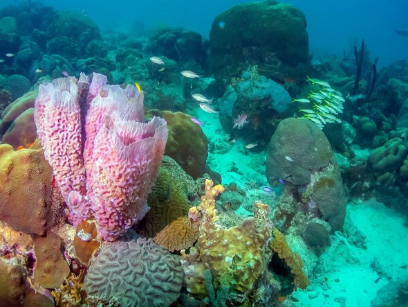 Heel karakteristiek voor het Caribisch gebied zijn de Buissponzen, vaak in groepjes en soms wel 2 meter hoog.